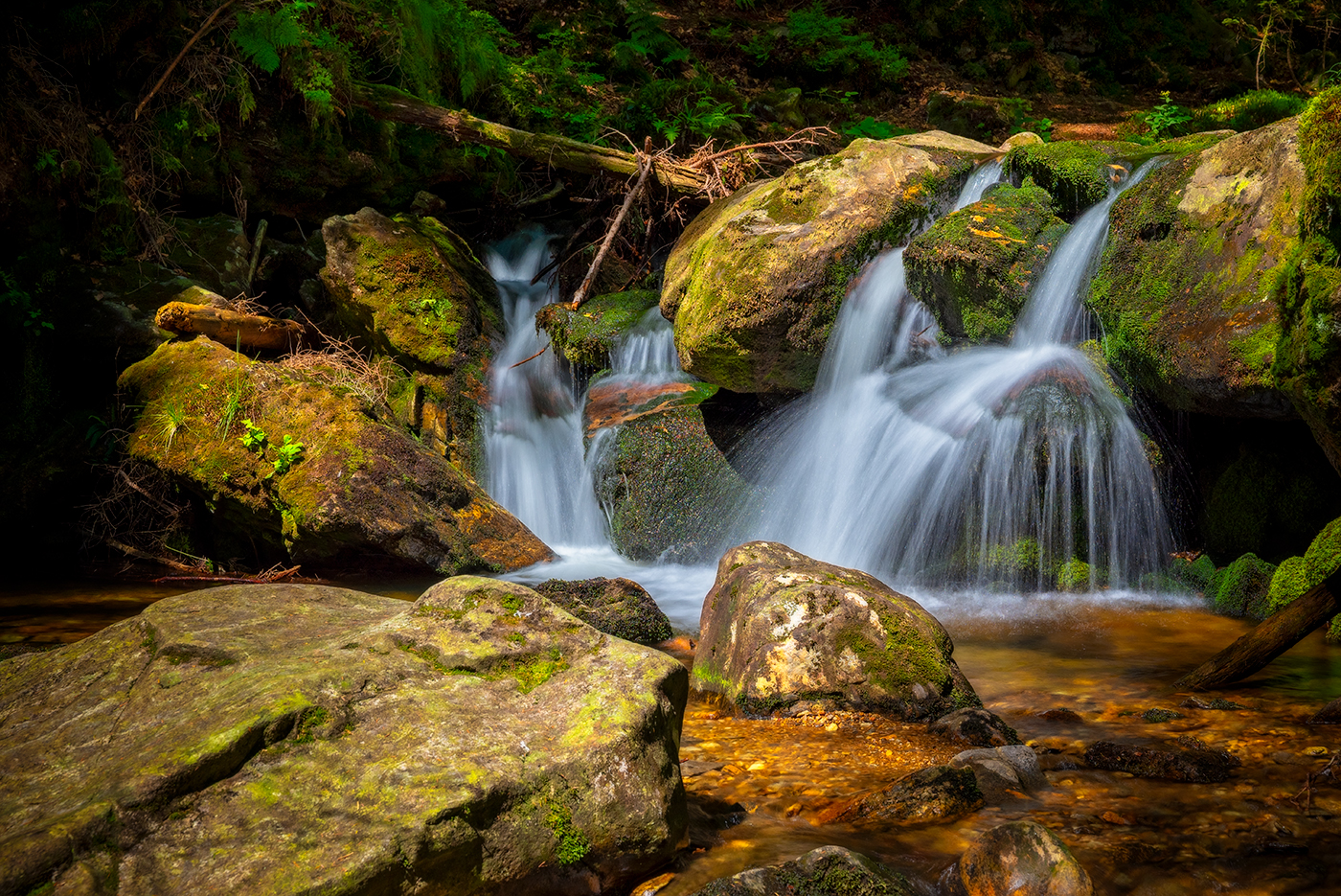 Der Hochfall Wasserfall nahe Bodenmais, der zweithöchste im Bayerischen Wald, ist leicht erreichbar. Der bewaldete Weg macht ihn auch an heißen Tagen angenehm zugänglich. Einzig das letzte Stück des Weges geht steiler bergauf.